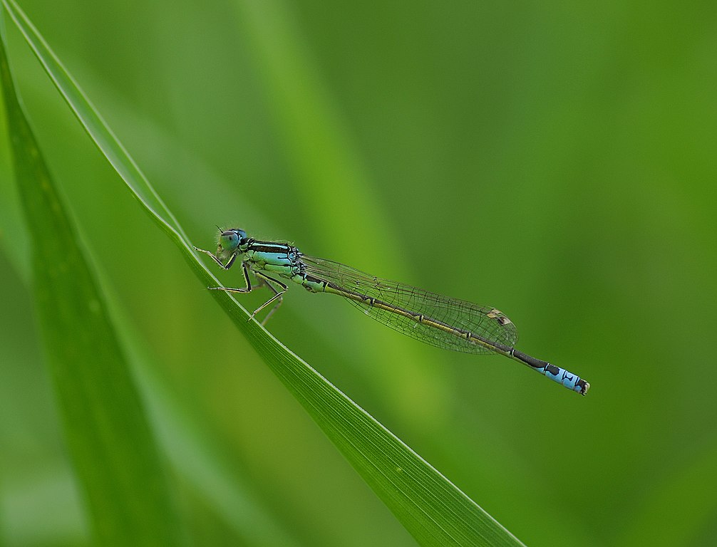 (Charpentier, 1825)Trata-se de uma pequena libelinha que não ultrapassa 31 mm de comprimento. O macho, azulado, apresenta manchas pós-oculares e linhas antehumerais negras muito bem marcadas. As marcas escuras desaparecem no final do segmento S8 e em todo o S9. Tem os olhos azuis. A fêmea é polimórfica: azul-esverdeada quando adulta e laranja durante a fase imatura; os olhos são esverdeados. No caso da fêmea, as linhas antehumerais torácicas estão ausentes. O pronoto é negro no centro. Em ambos os casos, as asas são transparentes e têm pterostigmas bicolores. Voam entre Abril e Outubro.