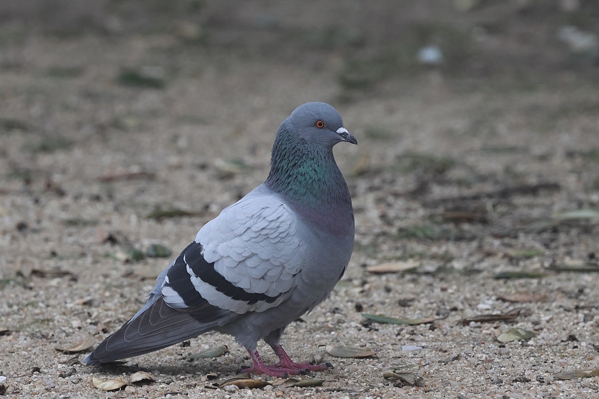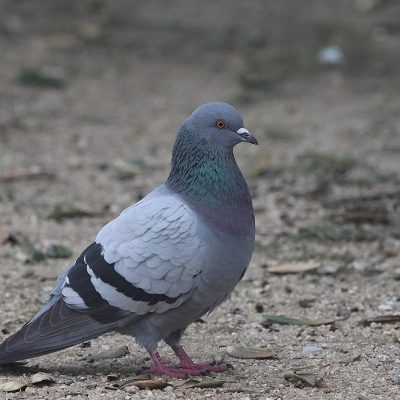 J.F. Gmelin, 1789Trata-se de uma espécie com duas variantes: a selvagem e a domesticada. Os espécimenes selvagens (pombos-das-rochas) têm menos variações na coloração que os espécimenes domesticados (pombos-domésticos ou comuns), cujas plumagens podem apresentar uma grande variedade de cores (e.g. cinzentos escuros, cinzas claros, violetas, rosados, brancos, castanhos, pretos, etc.). A plumagem da variante selvagem é cinza clara, destacando-se uma mancha verde e púrpura nas laterais do pescoço, sendo uma das características mais identificáveis. A cabeça é arredondada, o bico curto e os olhos são cor-de-laranja. Assinalam-se também duas riscas pretas nas asas, assim como uma barra negra na ponta da cauda. O uropígio é branco. Na maioria das vezes, a diferenciação das variantes é muito difícil porque existem zonas onde coabitam e acasalam entre si, levando a uma consequente hibridação entre as duas variantes.