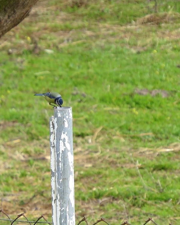 Linnaeus, 1758Trata-se de um pequeno e colorido passeriforme, que não ultrapassa os 12 cm de comprimento. Uma das características mais notórias é o seu barrete azul, que tal como as asas, também azuladas, está na origem do seu nome comum. Ainda na cabeça, apresenta uma lista ocular preta semelhante a uma mascarilha, que contrasta fortemente com as faces brancas. O padrão facial completa-se com o colar negro, que rodeia o pescoço. O bico é curto e negro. O peito e o ventre são de cor amarela, homogénea; na zona ventral é também possível notar uma risca negra, longitudinal. A zona dorsal é amarelo-esverdeada. A cauda, relativamente comprida, é azulada. Tem a particularidade de ser uma ave muito irrequieta e bastante ágil, que se movimenta facilmente por entre a folhagem, sendo possível observá-la, frequentemente, de cabeça para baixo, pendurada em pequenos ramos enquanto se alimenta.