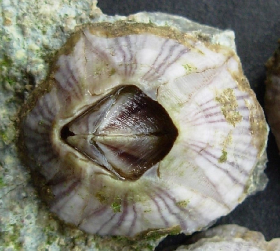 Trata-se de uma espécie polimórfica. As placas da muralha apresentam estrias longitudinais. A coloração é branca, por vezes com bandas violáceas ou róseas. O orifício é em forma de losango. A base é calcificada e porosa, podendo ultrapassar o 1,5 cm de diâmetro. Tem cerca de 1 cm de altura.