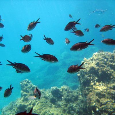 Chromis castanea, C. mediteranea, Heliastes castanea, H. chromis, Sparus chromis