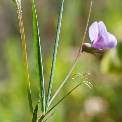L.Terófito. Planta herbácea, anual, de 10 a 50 cm de altura, com caules com costas ou com alados. Folhas: com um par de folíolos com 20-60 (100) x 1-7 mm, linear-lanceolados, opostos, com estipulas semi-sagitadas. Inflorescências: axilares, reduzidas a uma flor. Flor: corola de (6,5) 8,5 a 14 mm, papilionácea, purpúrea ou azul pálido e estandarte glabro, florescendo de Abril a Junho. Fruto: vagem com 25 a 50 x 3 a 4 mm, linear-elíptica, com 2 quilhas ventrais pequenas e uma no dorso. Sementes rugosas a finamente tuberculada.