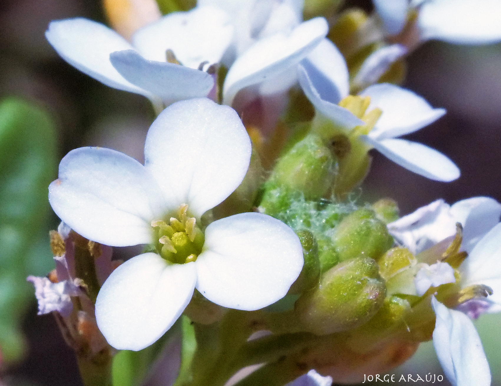subsp. maritima ScopoliPlanta anual, glabra, com tronco ramificado, prostrado ou ascendente, com ramos a partir da base. Forma pequenas moitas que podem atingir os 45 cm de altura. Raiz comprida e fina. Folhas: carnudas, pecioladas, alternadas, lobadas; as superiores diferentes das inferiores; folhas brilhantes devido a uma forte cutícula protectora. Inflorescência: flores brancas ou ligeiramente rosadas, dispostas em pequenos cachos, pouco densos; corola de 4 pétalas livres, com unha, dispostas em cruz; cálice de 4 sépalas erectas, as internas, gibosas na base; androceu com 6 estames, sendo 2 curtos e 4 longos. Fruto: silíqua com sementes pardas. As sementes são dispersas pelo vento e podem flutuar na água durante bastante tempo. Floresce de Março a Dezembro.